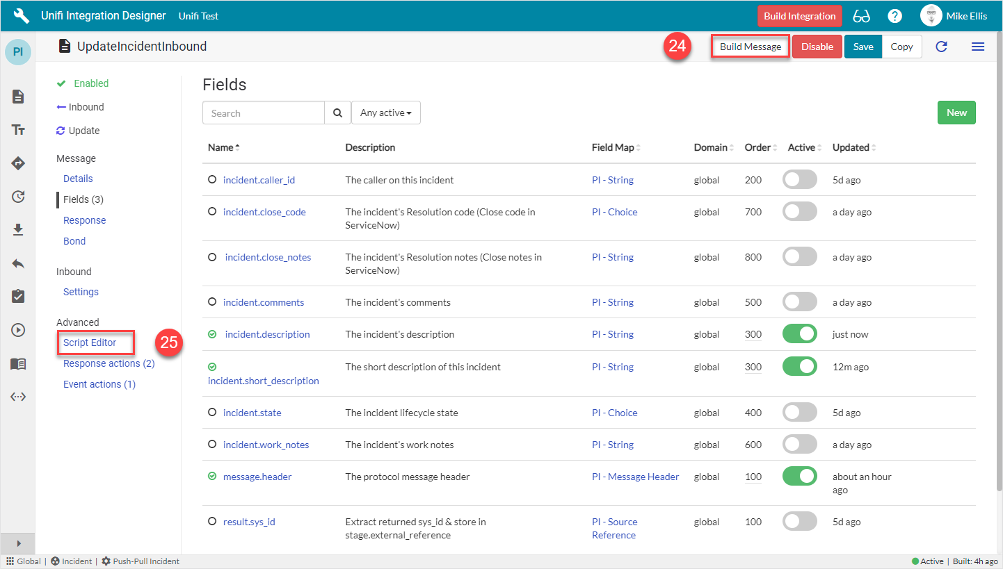 We will utilise the Field & Field Map records to configure the Message Scripts for the UpdateIncidentInbound Message.