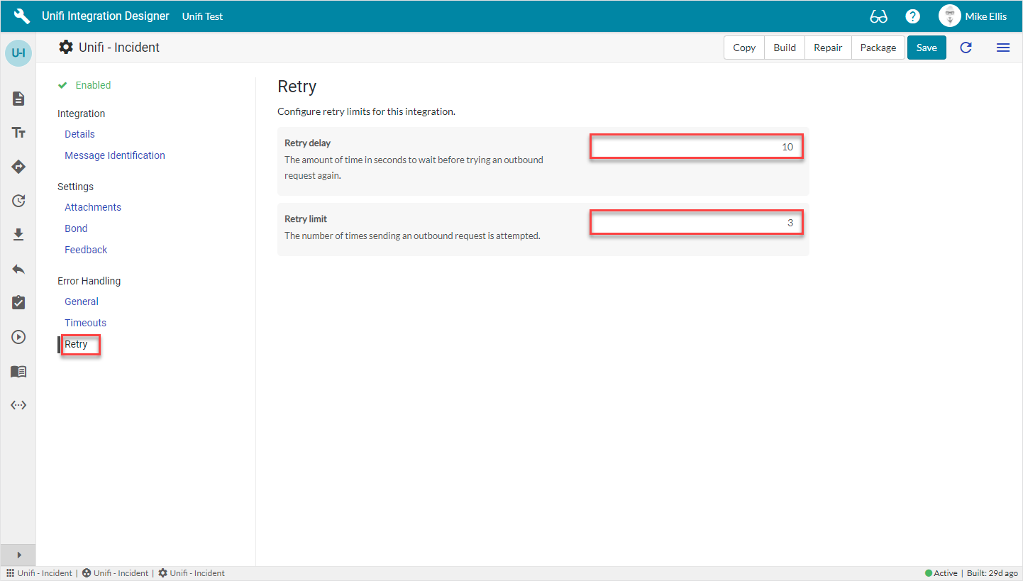Retry logic is configurable per Integration and controls how Unifi will automatically retry errored HTTP Requests.