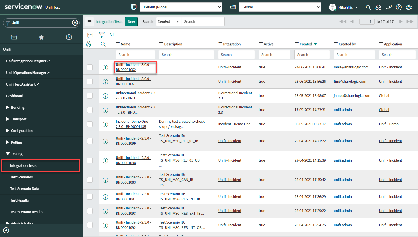The automated Integration Tests have been created and can be viewed by navigating to Unifi > Testing > Integration Tests.