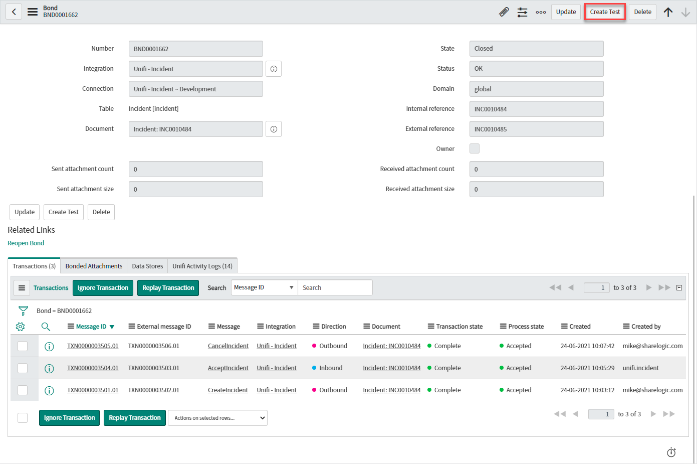 Integration Tests are created directly from the Bond record. At the click of a button, Unifi will generate a test which comprises each of the Transaction scenarios on that Bond.
