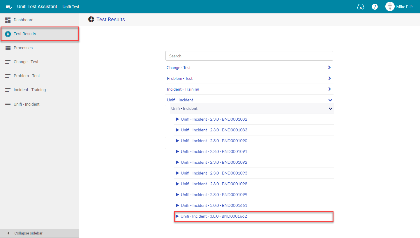 Navigate to Unifi > Testing > Test Results to open a list view, then click to open the desired result .