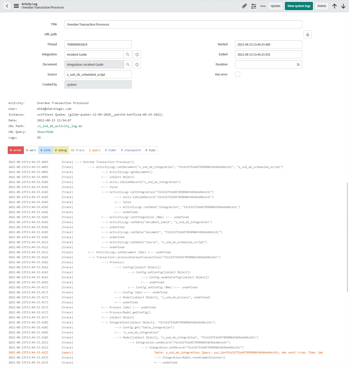 Clicking into the records, you will very quickly discover that the level of detail and clarity provided in the Activity Logs makes them of even greater value. It is the place to look when debugging.