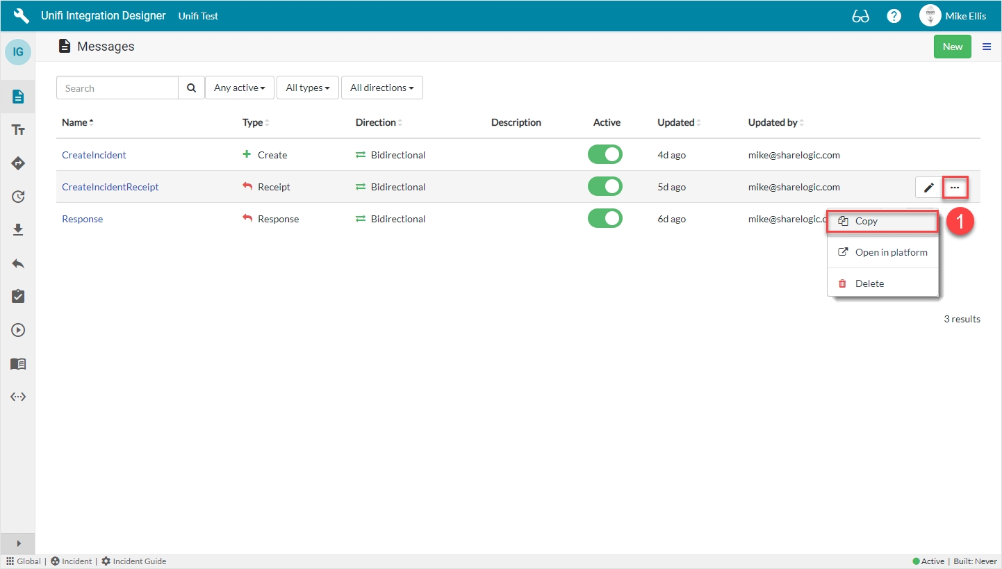 Click on the ellipsis to the right of the CreateIncidentReceipt Message & click Copy.