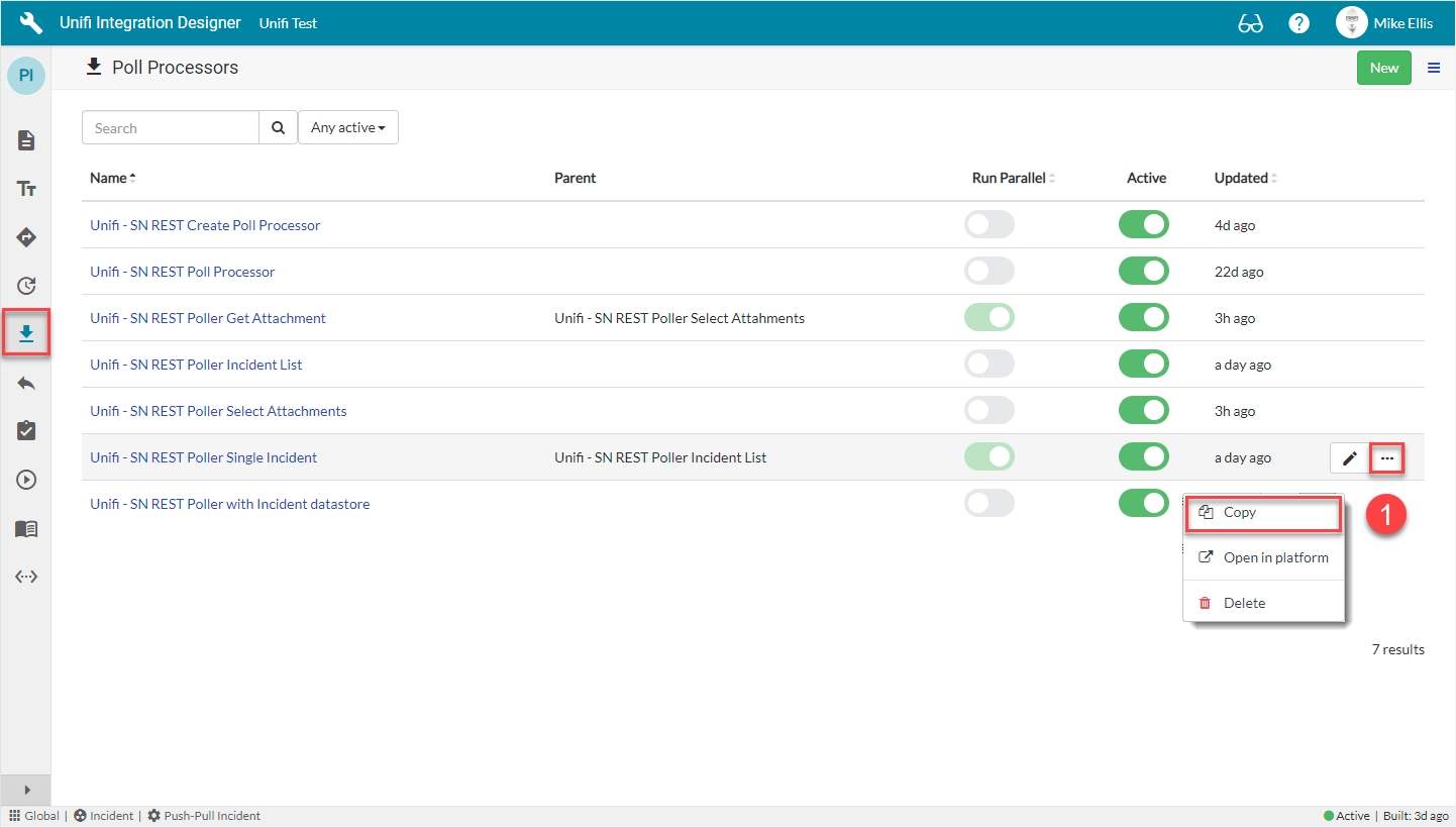 Click the ellipsis to the right of < Your Child Poll Processor > (created following the Incident Parent and Child Poller Guide) & then click Copy.