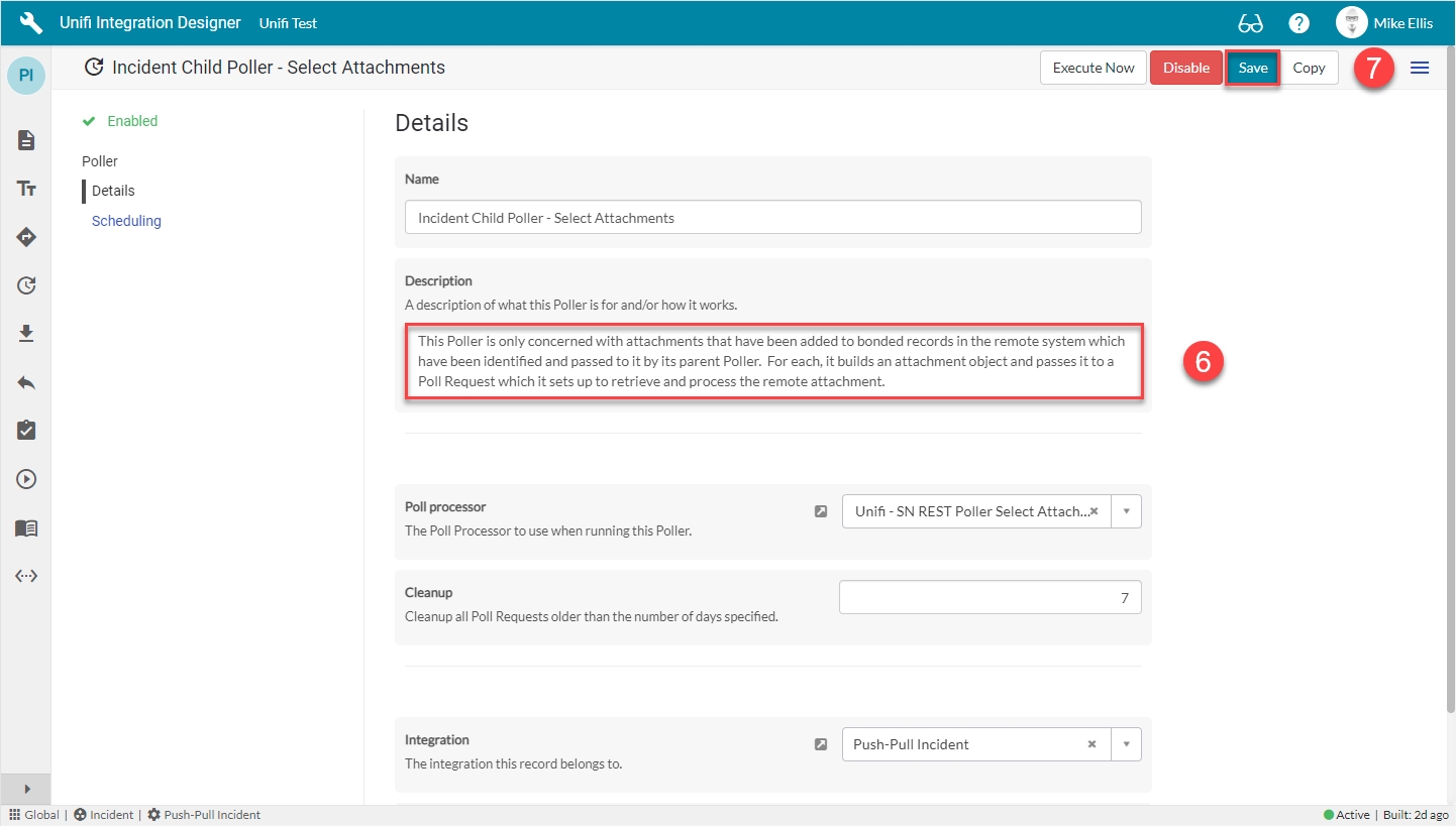 Update the value of the 'select_attachments' Connection Variable with the sys_id of the child Poller.