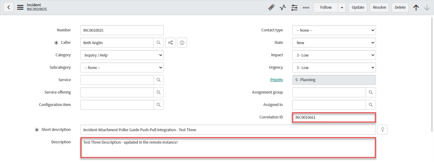 Follow these instructions to test the UpdateIncidentInbound Message.