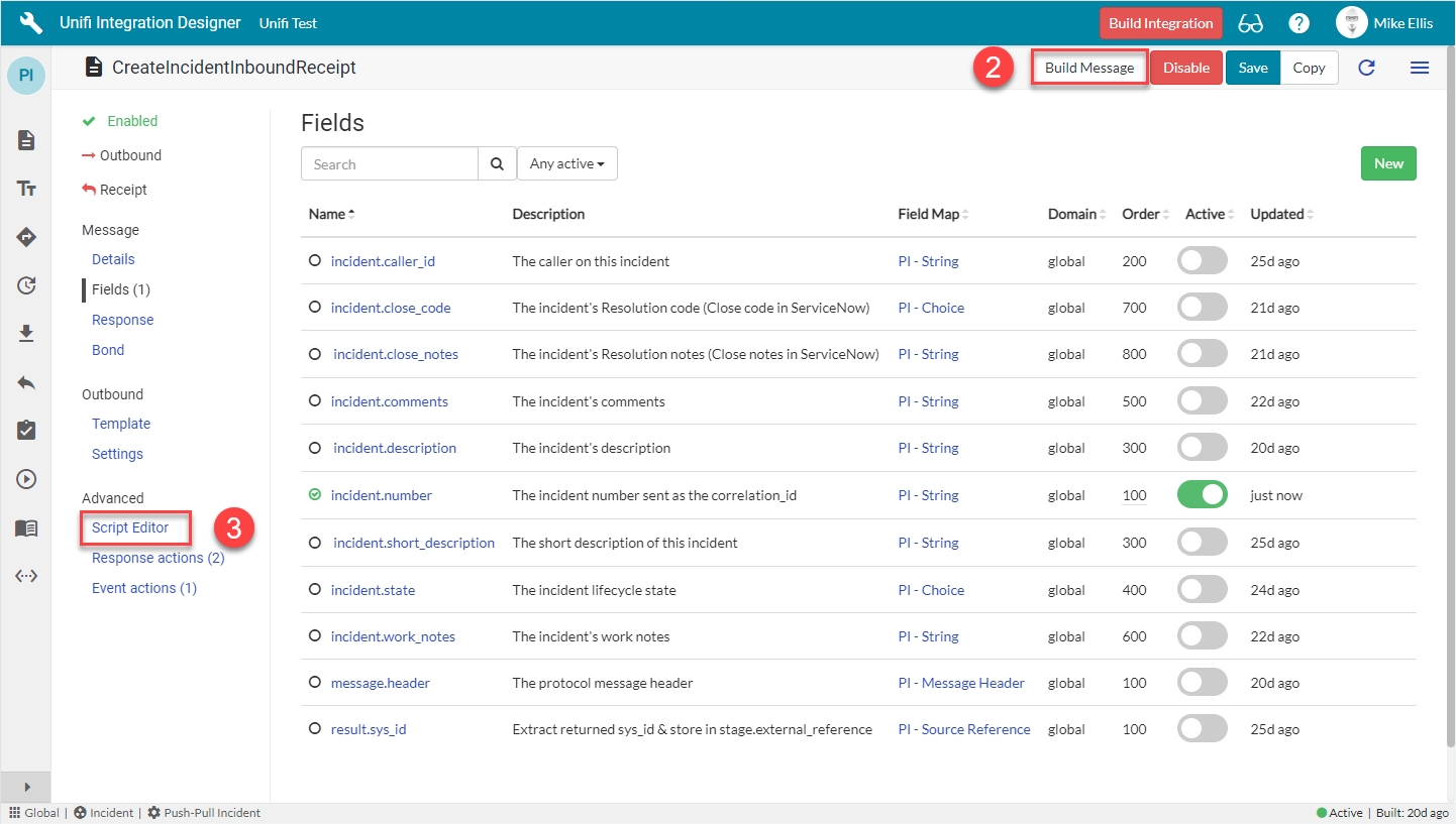 We will utilise the Field & Field Map records to configure the Message Scripts for the CreateIncidentInboundReceipt Message.