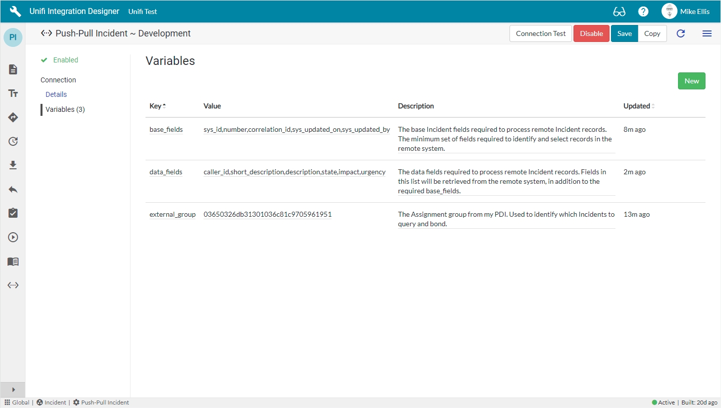 We will use Connection Variables to identify which Assignment group to look for and which field elements to return data from when polling.