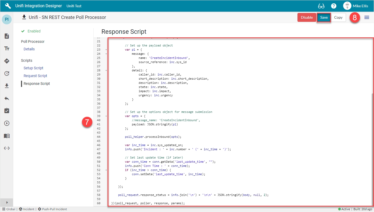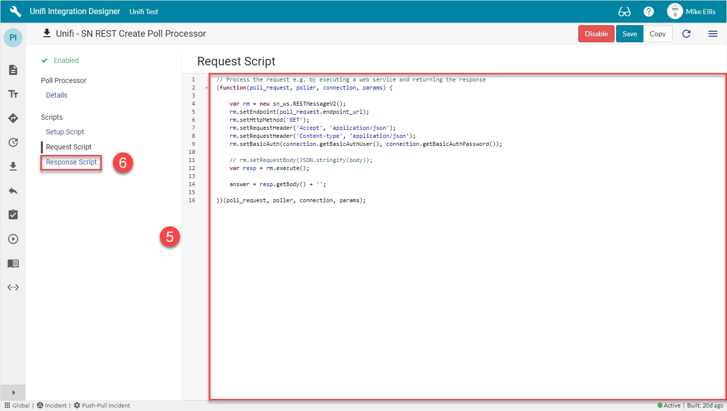 })(poll_request, poller, response, params);Your Response Script form should look like this: