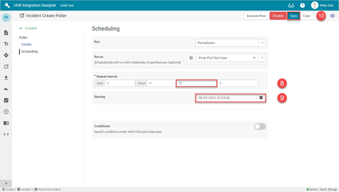 Poller will run with credentials of specified user.
