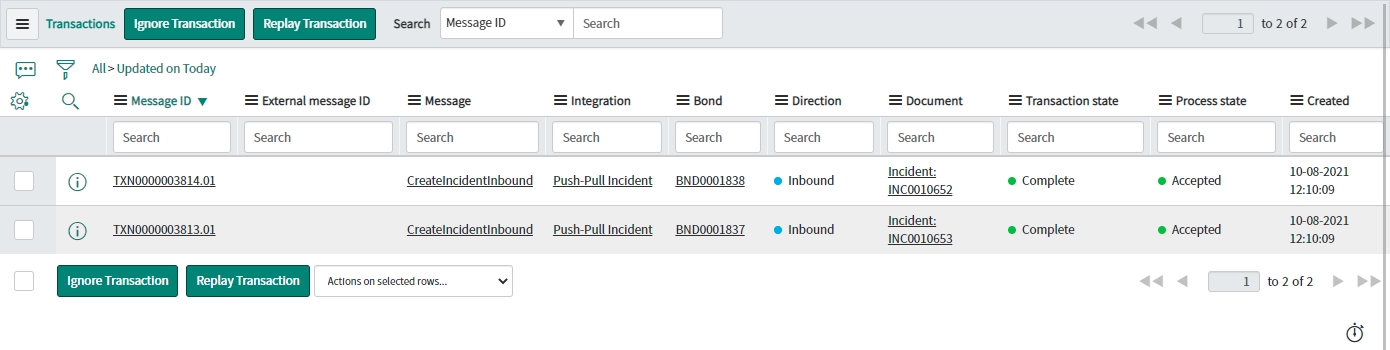 We can see that two CreateIncidentInbound message has been received. They are Complete & Accepted and display the relevant Incident & Bond numbers.