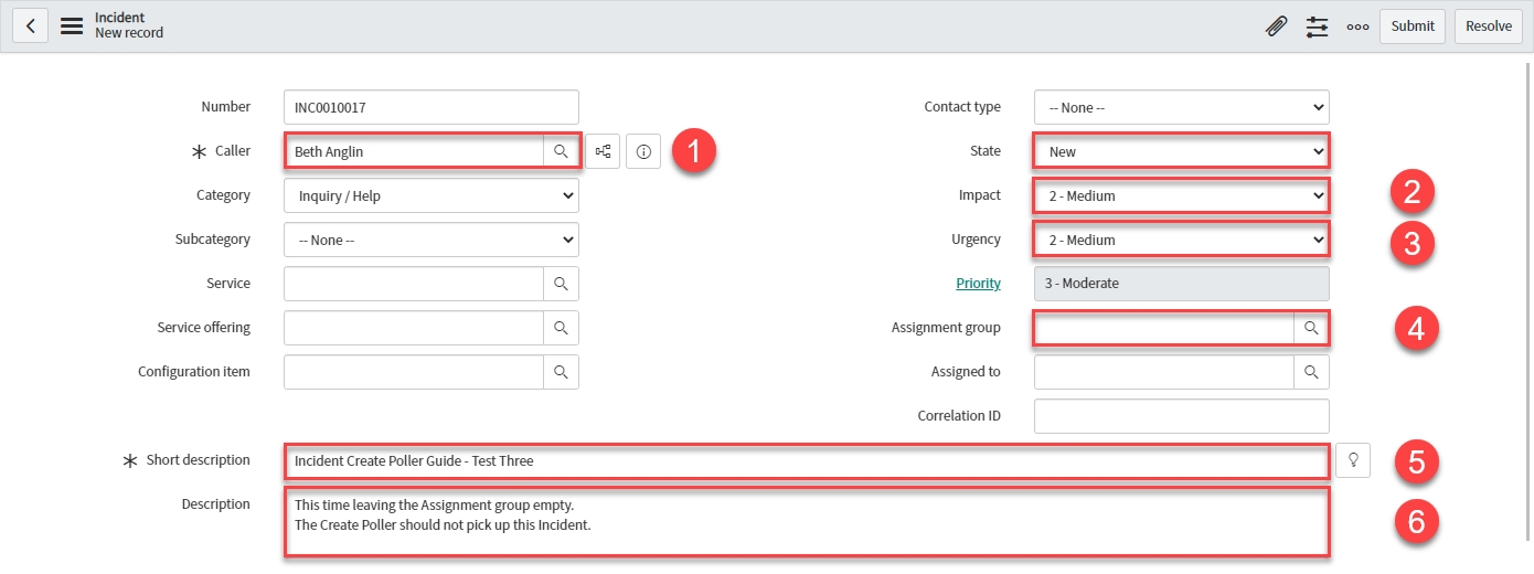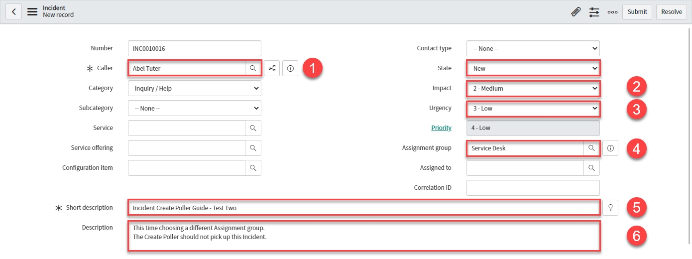 Your Incident form should look like this: