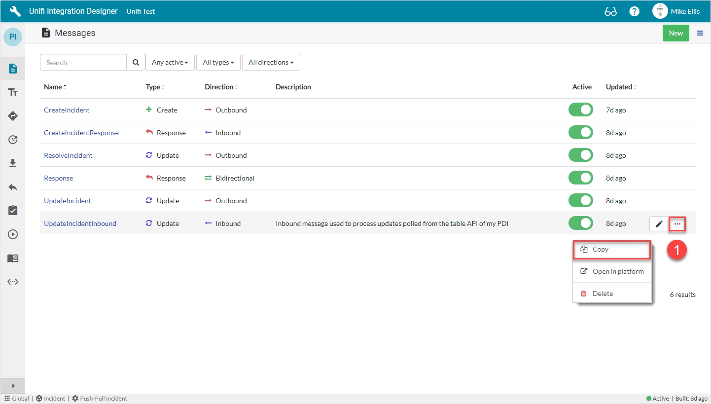 Click the ellipsis to the right of the UpdateIncidentInbound Message & then click Copy.