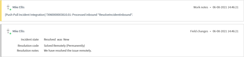 We can see that the State, Resolution code & Resolution notes have been updated on the bonded ticket.