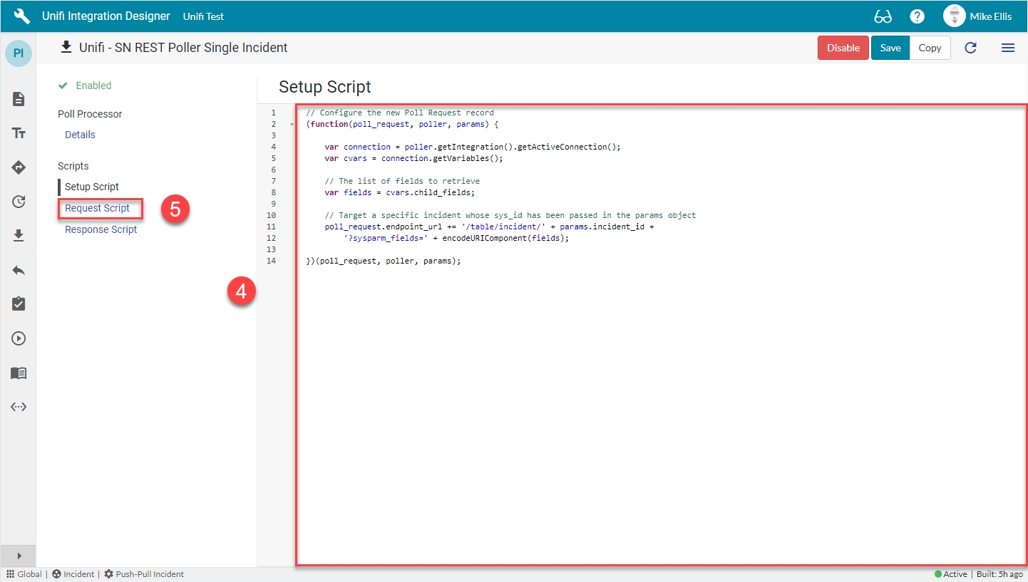 })(poll_request, poller, params);Your Setup Script form should look like this:
