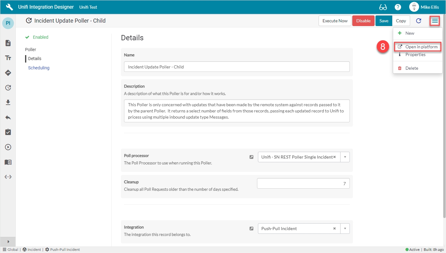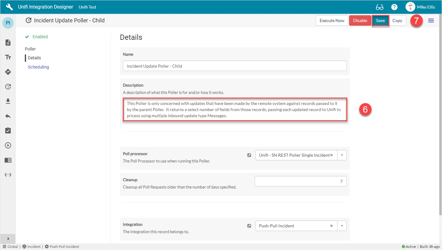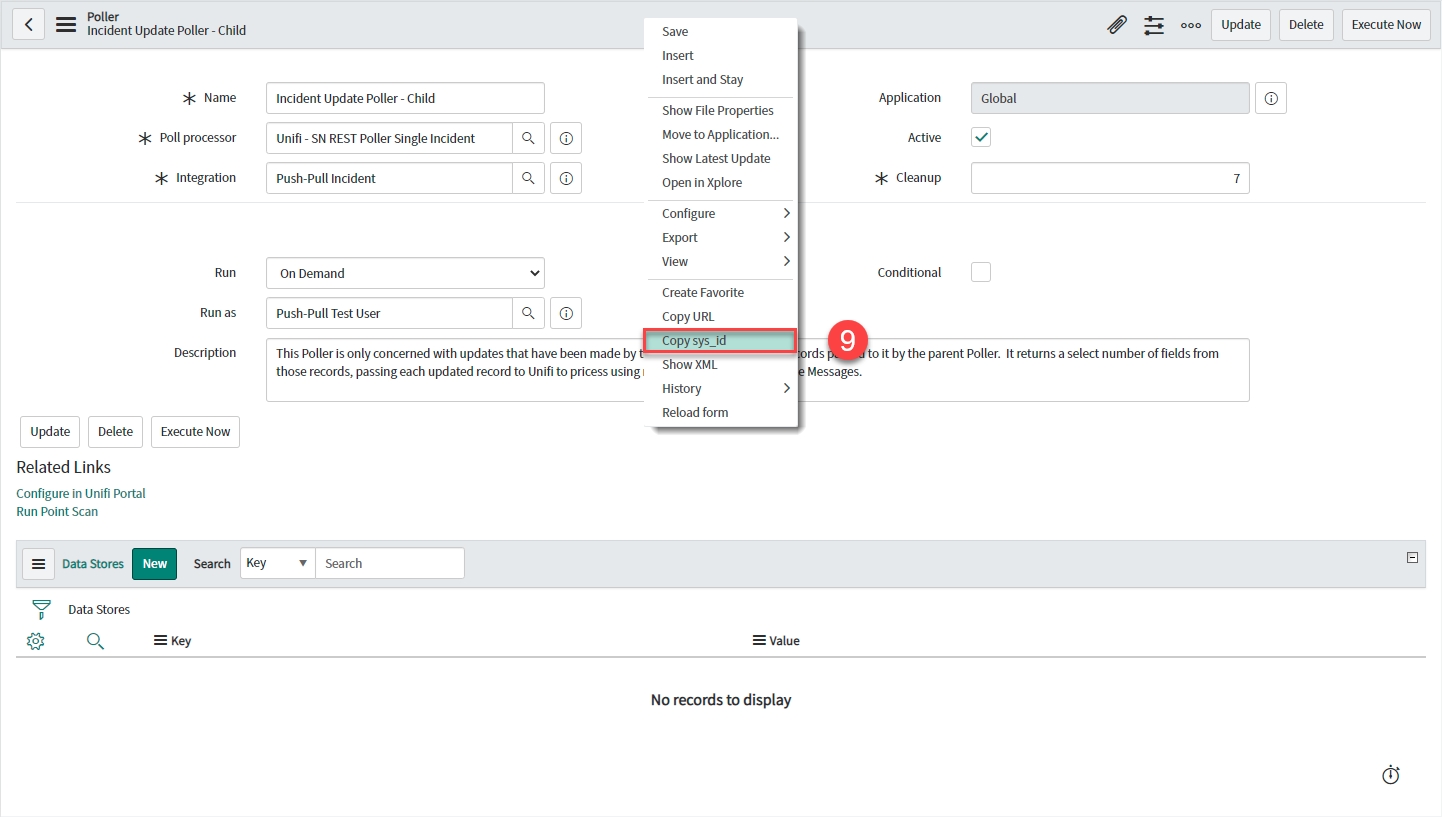 Update the value of the 'incident_poller' Connection Variable with the sys_id of the child Poller.
