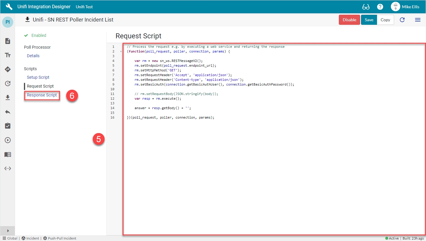 })(poll_request, poller, response, params);Your Response Script form should look like this: