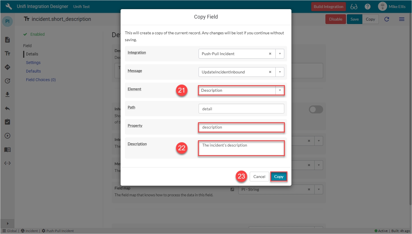Click the ellipsis next to the incident.short_desscription Field record & click Copy.