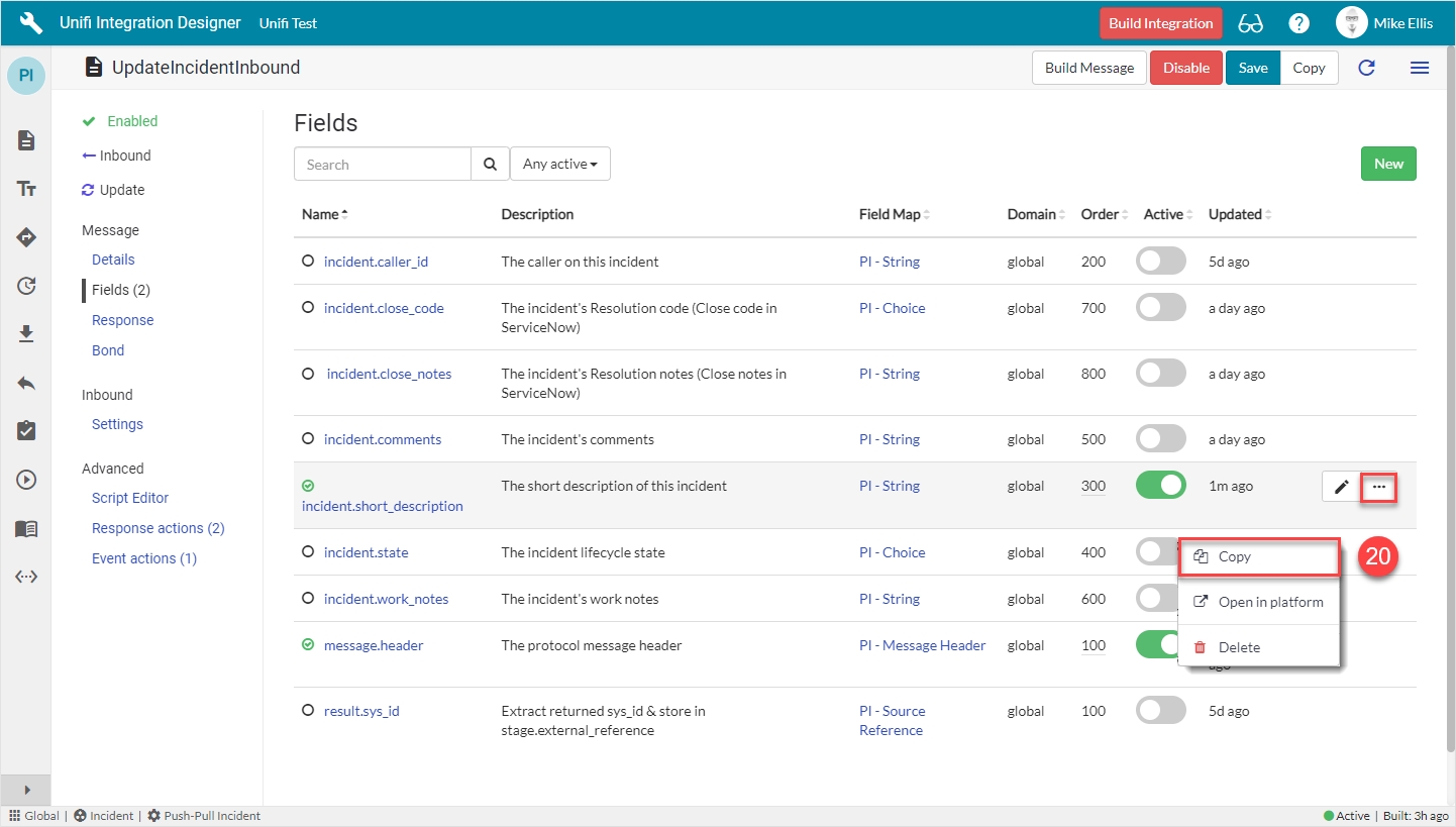 We will utilise the Field & Field Map records to configure the Message Scripts for the UpdateIncidentInbound Message.