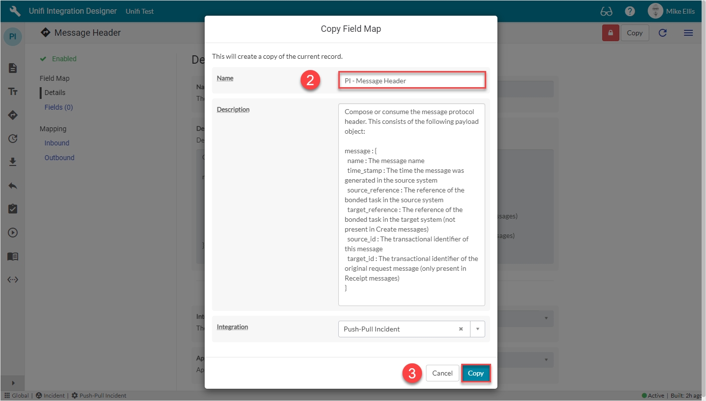 Click on the ellipsis to the right of the Message Header Field Map & then click Copy.