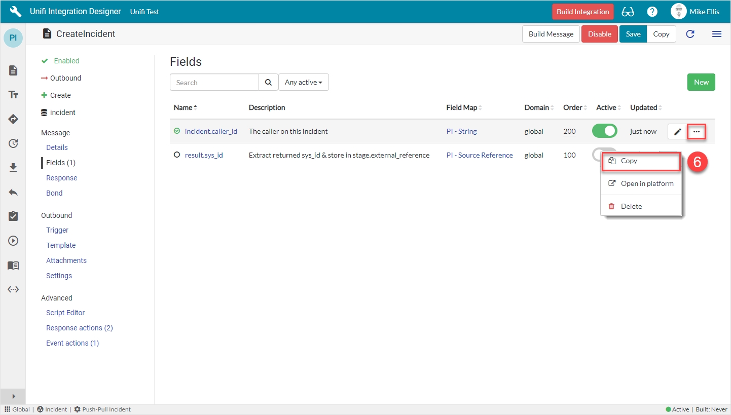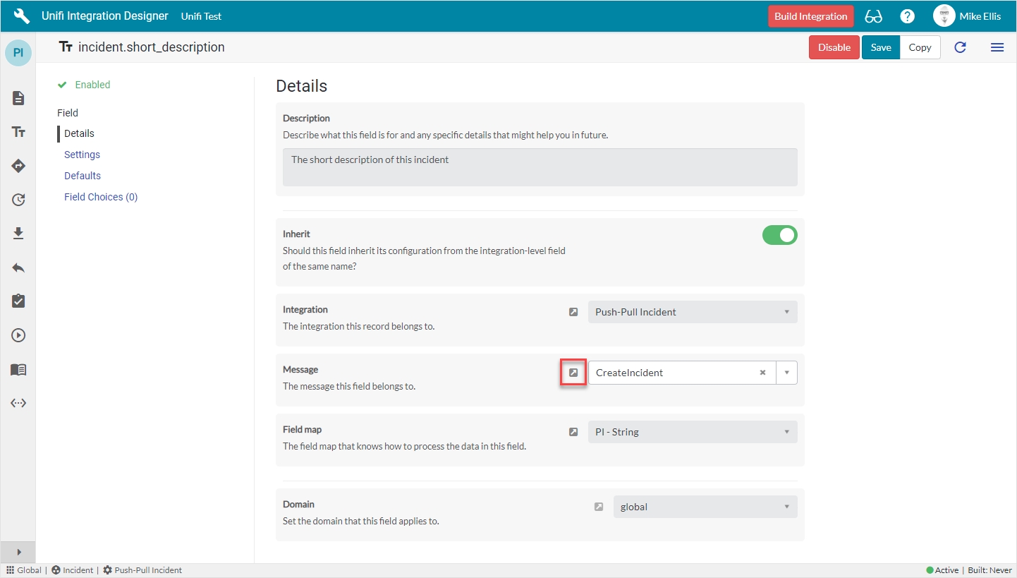 Feature Alert: The 'result.sys_id' Field is visible and inactive. It is an integration level Field which was automatically created by Unifi at the time we created the Message level record (in CreateIncidentResponse Fields). We'll talk in more detail about this feature in the following section.