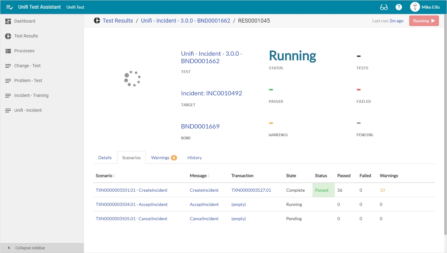 In Unifi Test Asistant, once you click 'Run' you will see the Integration Test Result record being populated with each of the Integration Test Scenario Results in real-time as they happen.